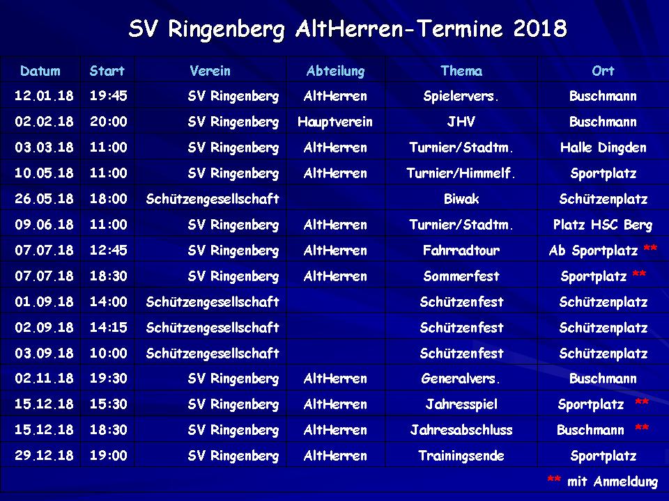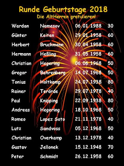| 2018 | 14. Feb | 30. Mrz | 01. Apr | 10. Mai | 20. Mai | 31. Mai | 16.07.-28.08. |