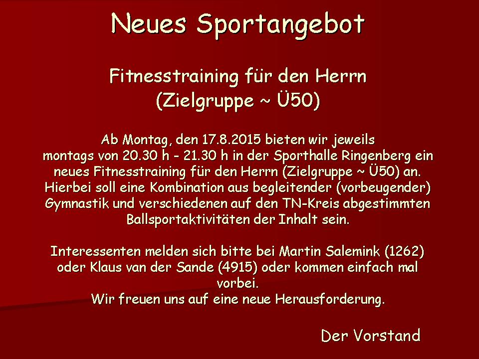 Fitness für den Herrn so ab ca. 50: Montags, 20.30 Uhr bis 21.30 Uhr